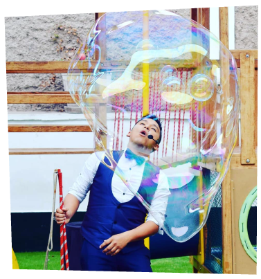 Disfruta de un espectacular show de burbujas dónde tus pequeños viajarán a un mundo lleno de colores y diversión. Te aseguramos que no dejarán de asombrarse con cada acción.